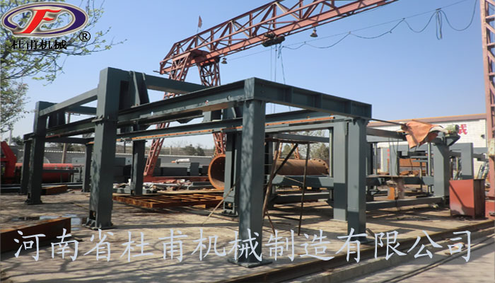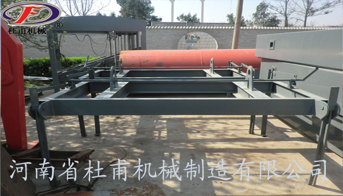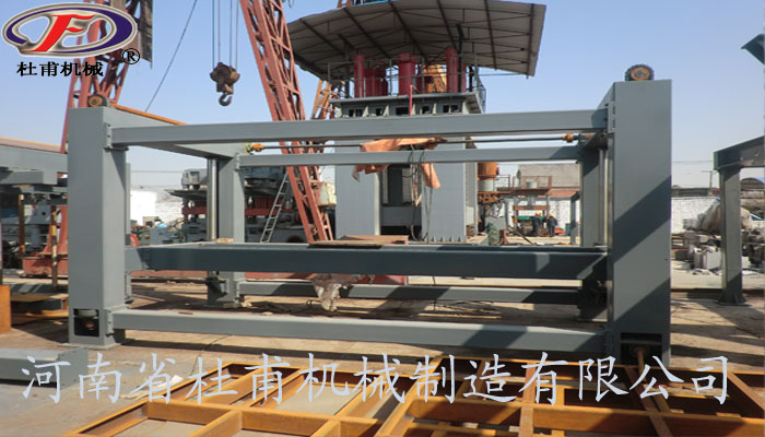 翻轉(zhuǎn)吊具把模具空中翻轉(zhuǎn)90度以后脫模把坯體連同模具側(cè)板放置在切割臺(tái)上,縱向切割裝置通過電機(jī)帶動(dòng)自身行走,對(duì)放置于切割臺(tái)上的坯體進(jìn)行行走切割,切割完成后行走至?xí)和N恢茫瑱M向切割裝置通過電機(jī)帶動(dòng)自身行走到坯體中央停止后再進(jìn)行水平式切割,橫切架自上而下垂直降落切割直至上升復(fù)位