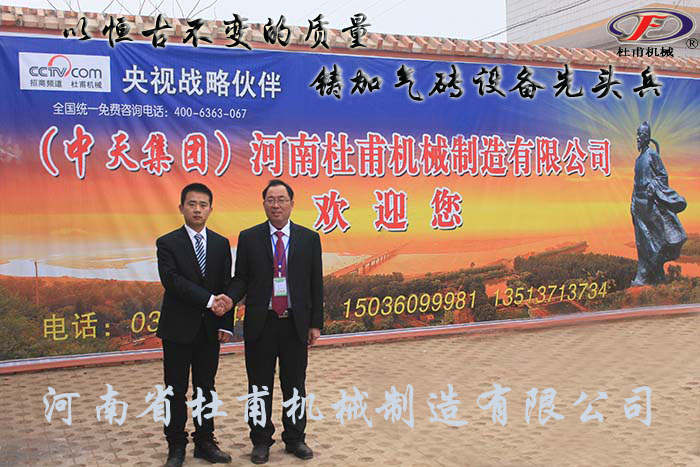 在加氣磚設備上我公司投入了極大的力量研發和生產,并以質量為主要目標,不但得到了廣大客戶的滿意和稱贊,還與“CCTV-招商頻道”達成戰略型合作伙伴,希望把質優價廉的杜甫機械加氣磚設備產品推廣給每一個需要的客戶和朋友。